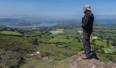 The image with me displayed on the 'Home Page' is of the Usk Valley viewed from Allt yr Esgair looking north to the Brecon Beacons with the River Usk meandering through verdant farmland below. This view is one of my local favourites and was captured by using a remote IR device mounted on my landscape camera. (See Hahnel Combi TF remote control in equipment reviews).