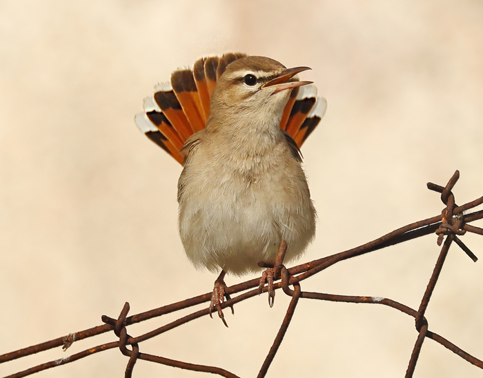 This one particular bird took am obvious fancy, for whatever reasons, to an old derelict building and if you waited in your vehicle it would come and perch in various positions and sing for a mate. One of its favourite perches was a rusty old chain link fence - don't try to think why, it defies logic.