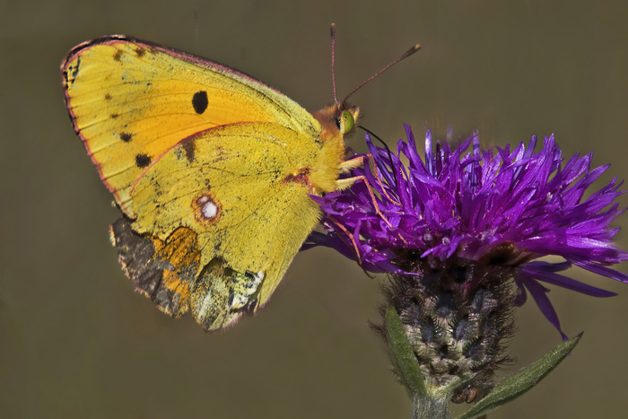 The Clouded Yellow is a scarce and difficult to find butterfly in the Brecon Beacons and to come across one feeding on Knapweed this morning in glorious sunshine was a lovely find for Susan and myself. These beautiful butterflies brighten up anyone's morning.