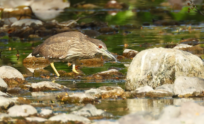 In Lesvos if you have the time and sit quietly by a water course, sooner or later something will appear, and that's just what happened when this juvenile Night Heron came out of the undergrowth looking for food, particularly froglets, which were in abundance in this small stream.