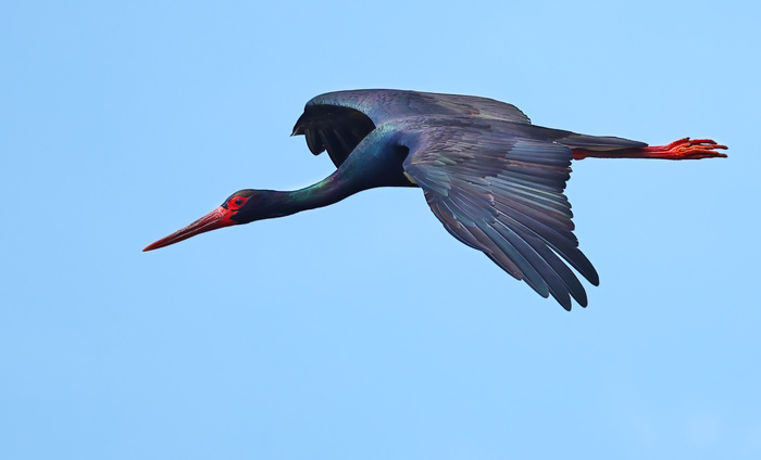 One of my favourite birds on the island of Lesvos, where they inhabit areas containing water. These lovely gentle birds spend their time there wading around looking for frogs etc. They are very shy and we surprised this bird near the confluence of two streams in a beautiful and remote setting near an old monastery, and like the people who previously lived there, they like peace and quiet, and fortunately for us as it wheeled up and flew away it came quite close. Their beautiful colouration isn't perceived at distance, they just look black, but up close........