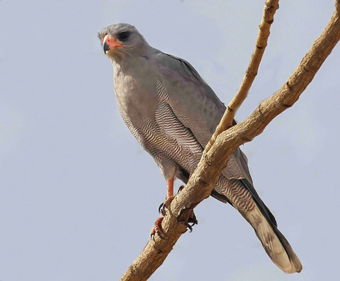 I managed to slowly get closer to the bird by sneaking from bush to bush and taking shots as I went along, at least you have some images doing it this way if the bird flies away. I had taken some reasonable shots of this ghost – like bird with its ruby red eyes and elegant light coloured plumage, I was hoping for more when suddenly it became very animated, I knew it wasn’t me because I had been very careful, then suddenly a different Raptor flew into a nearby tree causing the Black Shouldered Kite to fly off. I turned around to be confronted by a Dark Chanting Goshawk.