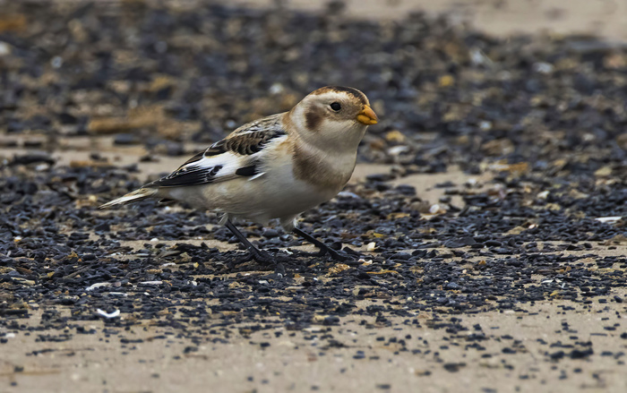 Snow Buntings can be seen in small numbers foraging on the tideline.