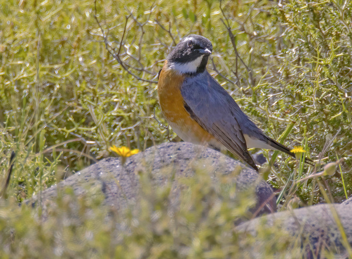 We locked the car and walked along an old rough track that runs between olive and fig groves - our targets were warblers. In particular, Orphean, Icterine, Olivaceous and hopefully Barred. After about two hundred yards an old farmer came along driving about a hundred sheep and he asked us to wait until he got the animals into a grazing meadow. We exchanged pleasantries and we were surprised by how much he knew about Wales. He thanked us for waiting and we said our goodbyes. On we walked while admiring the myriad of wild flowers that lined the track, we had seen a few birds, nothing special but that didn’t matter because it was a glorious morning and it was just nice to be out early. The habitat had now changed to low growing and quite aromatic bushes and shrubs interspersed with small rocks. Suddenly I saw something move at the bottom of a bush about ten yards away and I caught a flash of white and then some orange, my first thoughts were male Common Redstart which would have been nice, however, nothing could have prepared me for what was about to happen – a full summer plumaged adult male White Throated Robin perched on a small rock in front of me.