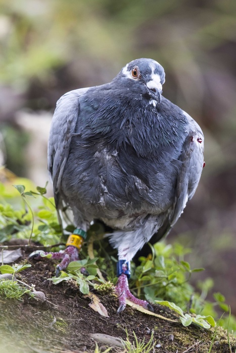 We watched as, what we could now see was a Racing Pigeon, make land and scramble under the trees to escape its attacker.