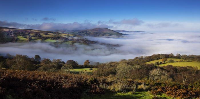 This morning I was up on Llangynidr moor in the Brecon Beacons looking down the Usk valley at one such scene.